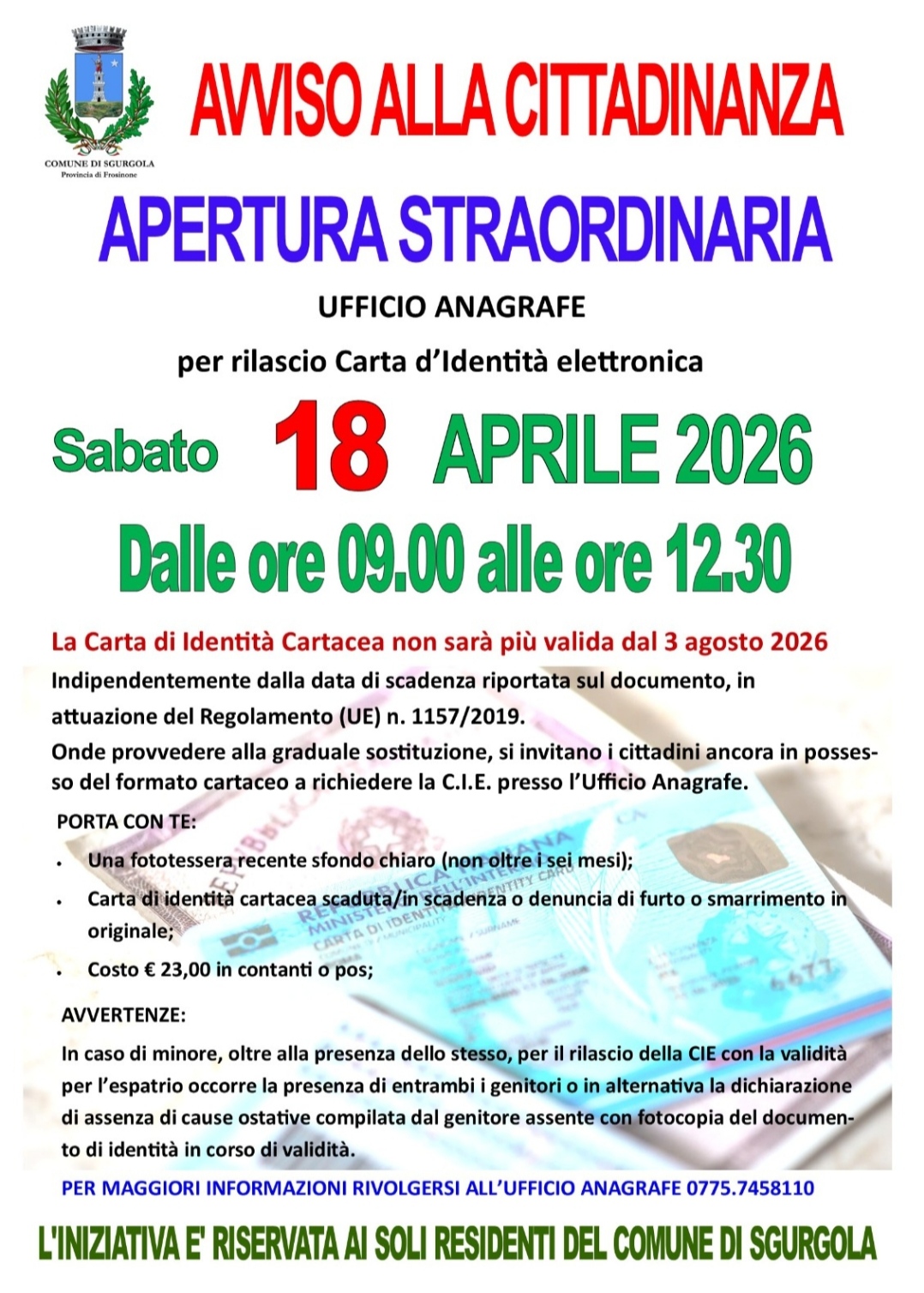 Apertura Straordinaria Ufficio Anagrafe